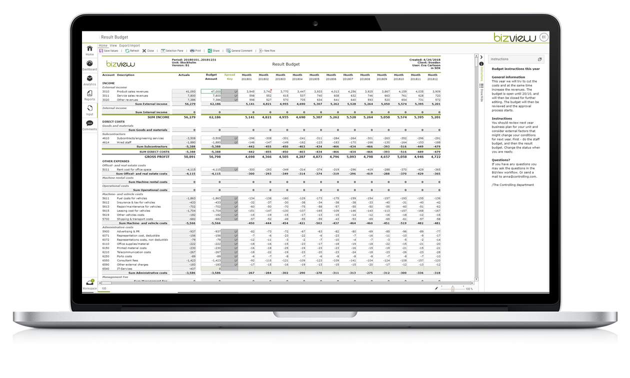 BizView erbjuder en omfattande lösning för prognoser, budgetering, rapportering och analys. Snabbt, skalbart planeringsverktyg i webbläsaren.